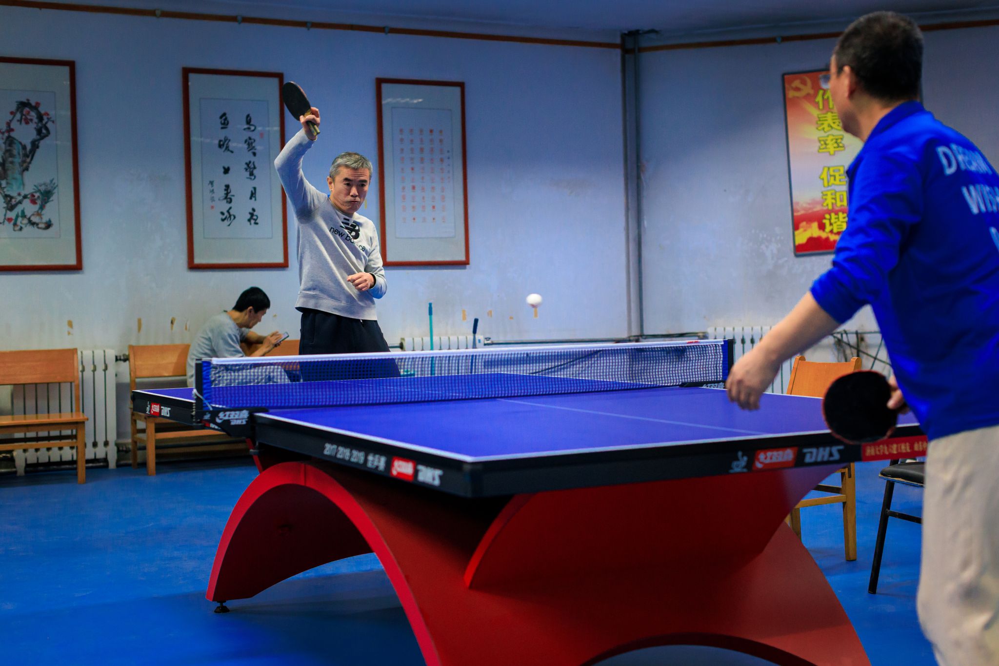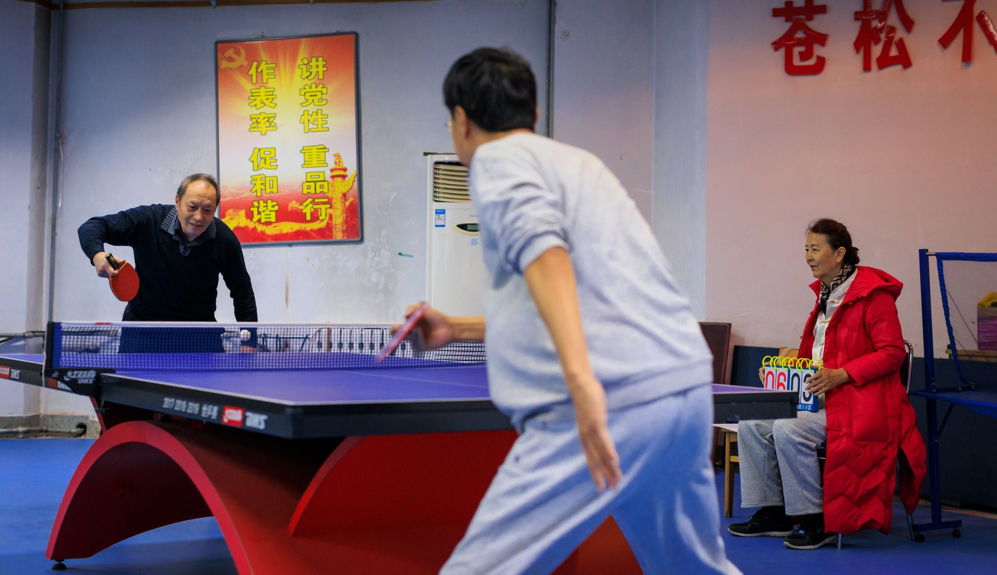活动中心乒乓球室随后迎来精彩对决,老同志们身着轻便运动装,挥舞着球拍,身姿矫健如昔。发球、接球、扣杀,每一个动作都充满力量与技巧,白色的乒乓球在球台上方来回穿梭,展现出不输年轻人的活力与激情。赛场边,观战的老同志不时为精彩表现鼓掌叫好,现场氛围热烈而融洽。