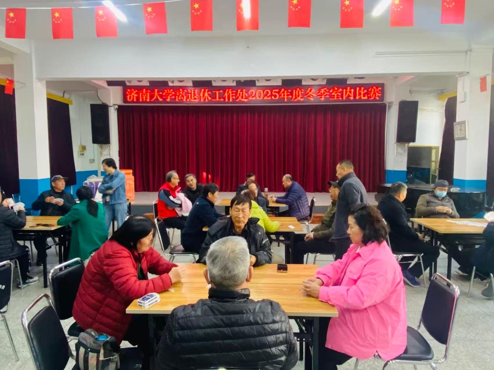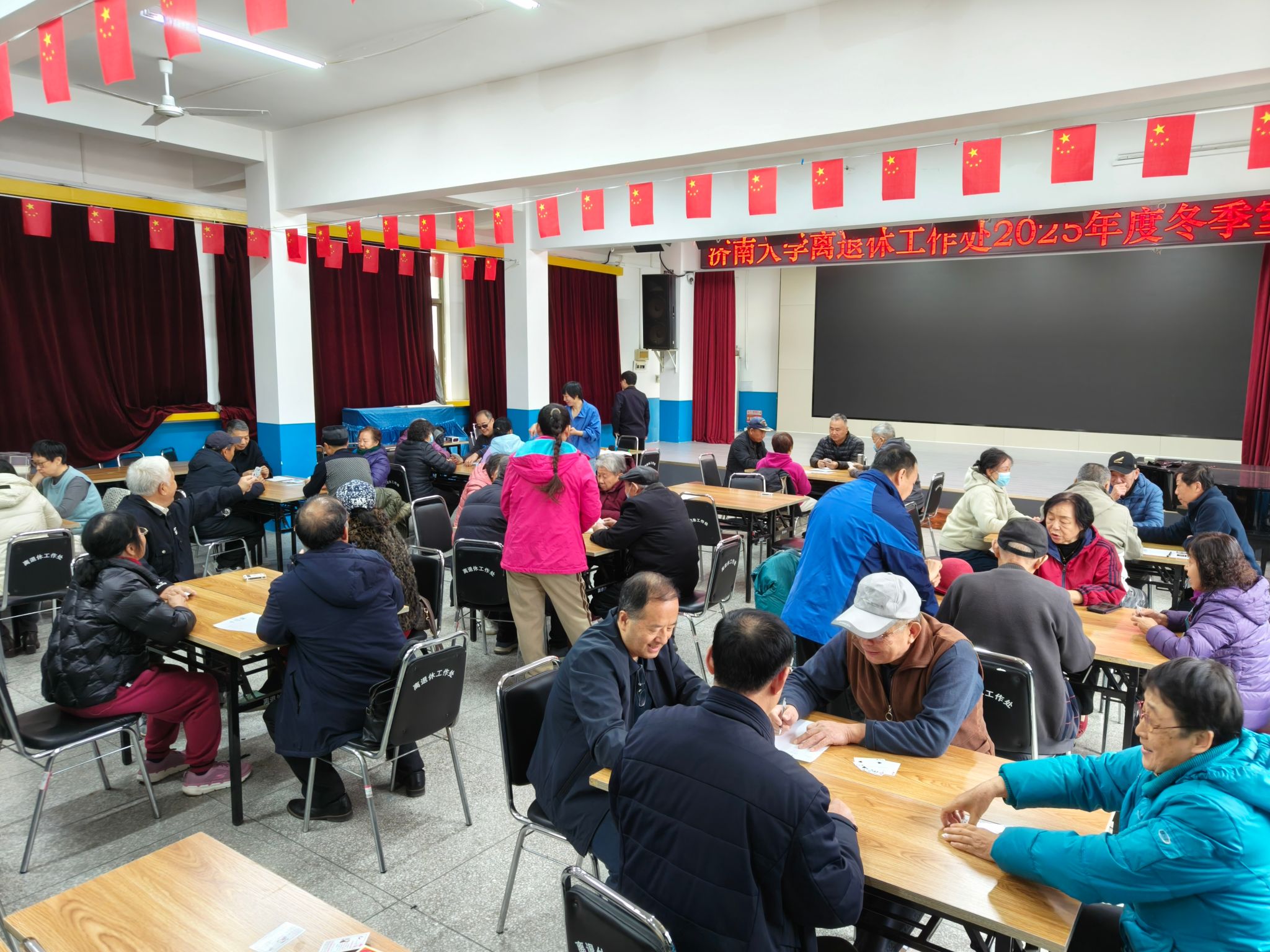 为进一步丰富离退休教职工的精神文化生活,强化老同志间的交流互动,营造健康和谐的校园氛围,学校离退休工作处精心策划并组织开展了冬季室内比赛活动。活动涵盖麻将(推倒胡)、扑克(手把一)、台球、中国象棋、乒乓球、掼蛋六大深受青睐的项目,凭借趣味性与参与性,吸引了众多离退休教职工踊跃报名,在校园内掀起了一阵欢乐的运动热潮。