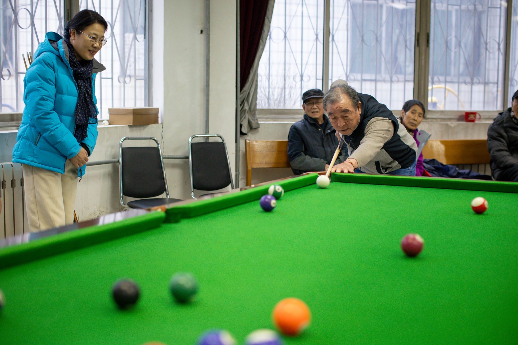 随着赛事推进,台球比赛如期开赛。参赛老同志们手握球杆,神情专注,目光紧紧锁定目标球,屈膝、瞄准、推杆,一系列动作行云流水。每当白球精准撞击目标球入袋,现场便响起热烈的喝彩声,大家在切磋技艺的过程中,尽享台球运动带来的独特乐趣,也让彼此间的情谊在互动中不断升温。