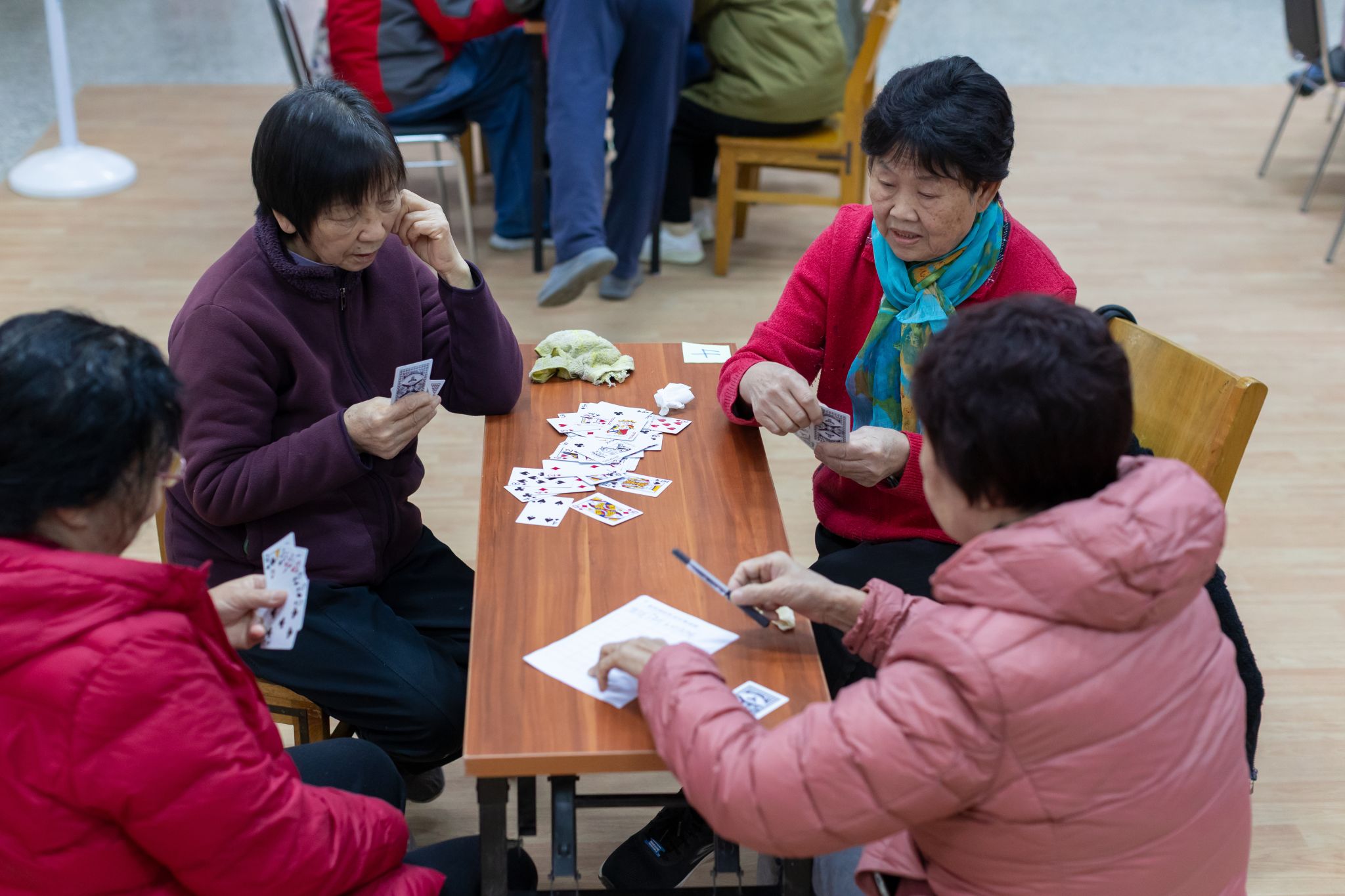 麻将赛场上,老同志们严格遵循规则有序竞技,出牌之余还不忘互相交流技巧、分享经验,轻松愉悦的氛围贯穿始终,为本次冬季室内比赛活动画上了圆满句号。
