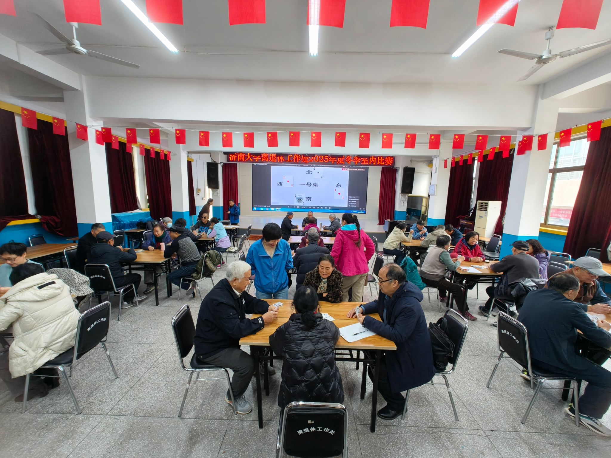 首场扑克(手把一)比赛于离退休工作处二楼多功能厅正式拉开帷幕。赛场上,老同志们精神矍铄,默契十足,每一次出牌都尽显娴熟技巧,清脆的洗牌声与阵阵欢声笑语交织,充分展现出积极乐观的精神风貌。